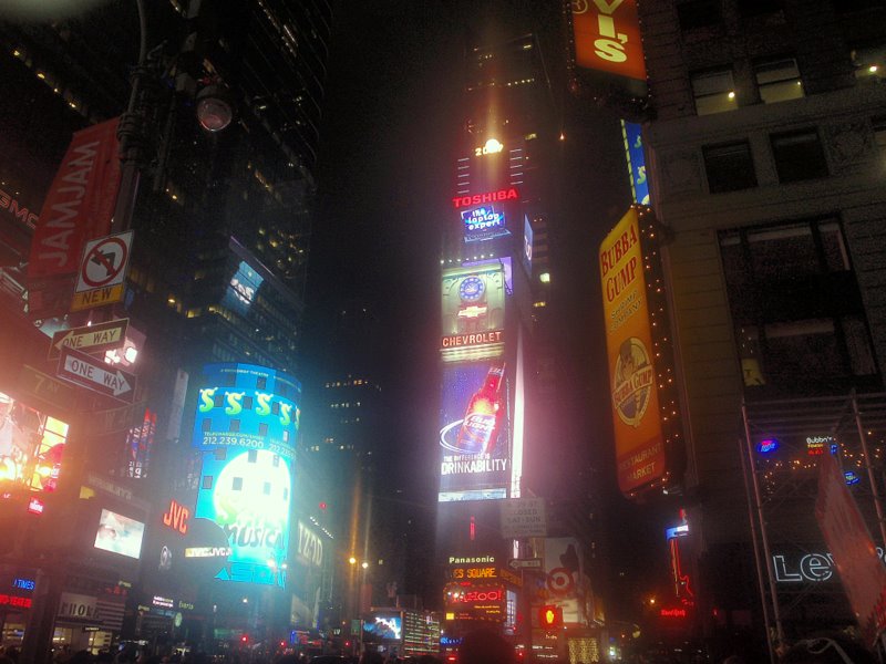 Η Times Square το βράδυ είναι απροσπέλαστη από τον πολύ κόσμο... φωτεινές επιγραφές, μουσική, φασαρία, ζωντάνια...